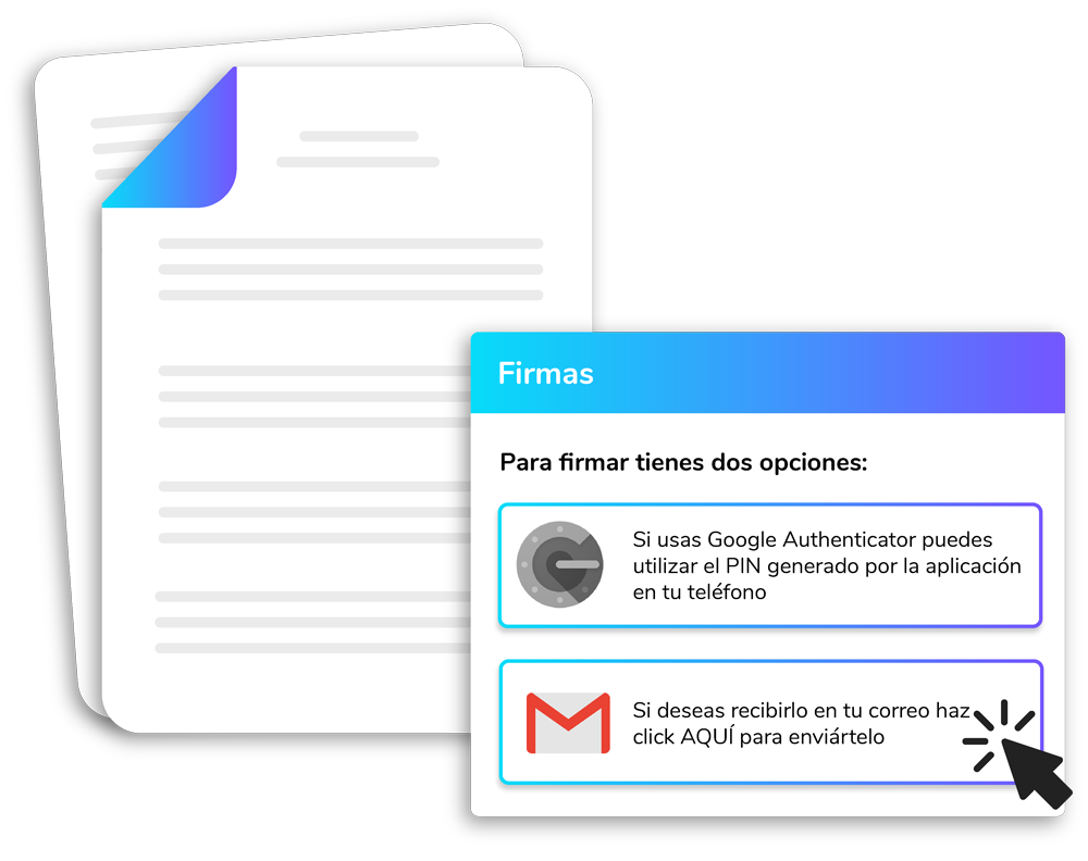 Visualiza y revisa el documento. Si estás de acuerdo, solicita tu pin de confirmación a través de correo o Google Authenticator para proceder con la firma.